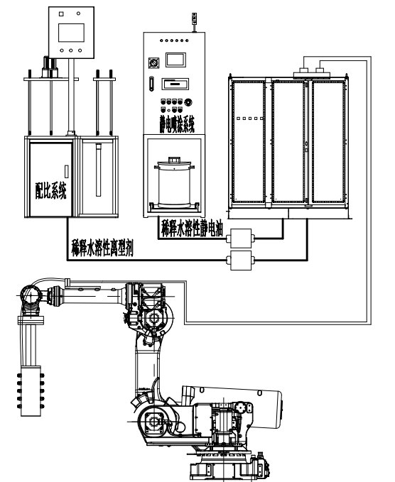 本装置是对水溶性离型剂进行任意稀释倍率的设定后,装置自动进行稀释后送给喷涂装置的设备。